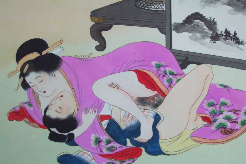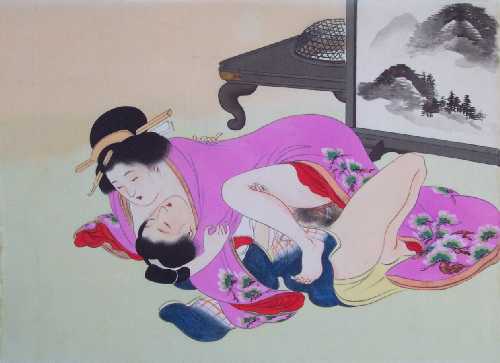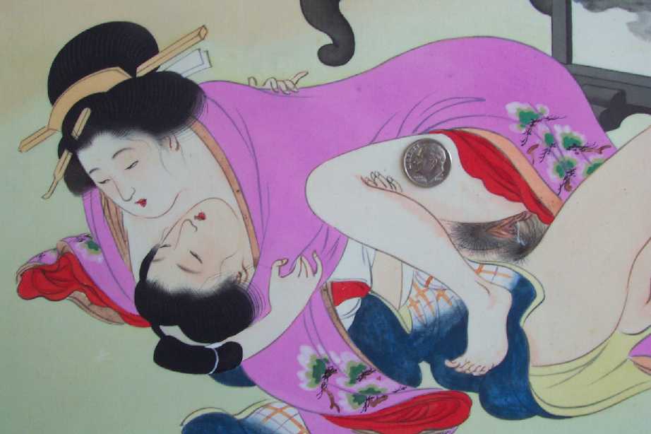 "shunga" designs. From an album of 12 original paintings on silk which preceeded the publication of a 12 woodblock