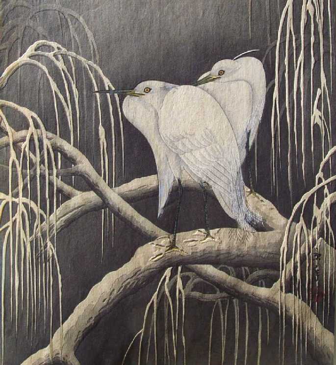 "Two Egrets on a Snowy Branch" (given name) |