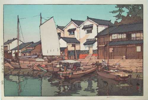Wonderful colors--One of 12 prints from Hiroshi's two-month "sketching trip" of March 1931 along Japan's Inland Sea. |