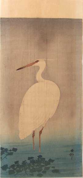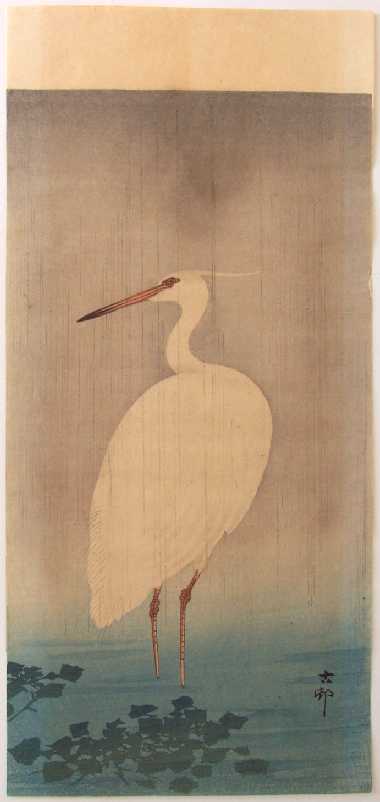 A little egret standing motionless in the rain. The original painting for this design are known. |