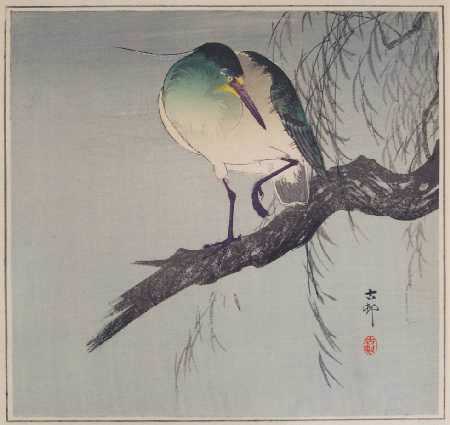 Very Fine. Soft "bokashi" shading; "gauffrage" to outline of egret; baren "sujizuri" (tracings) to willow branch;