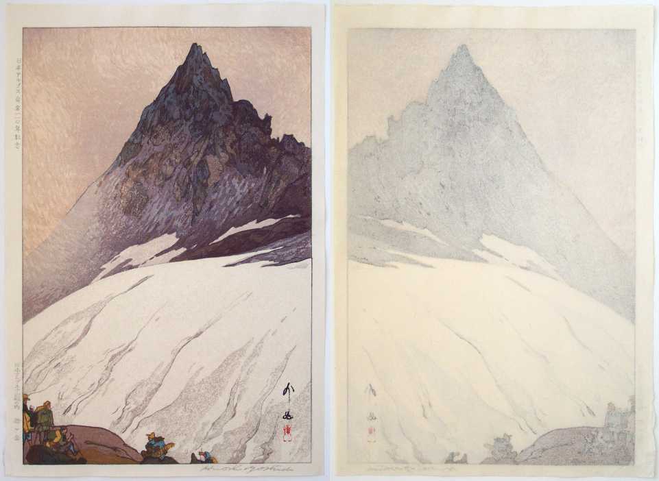 Very Fine. Skillfully executed "bokashi" shading; light "gauffrage" to snow and mountain's top. |