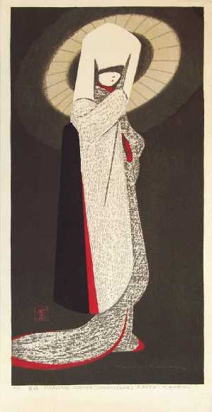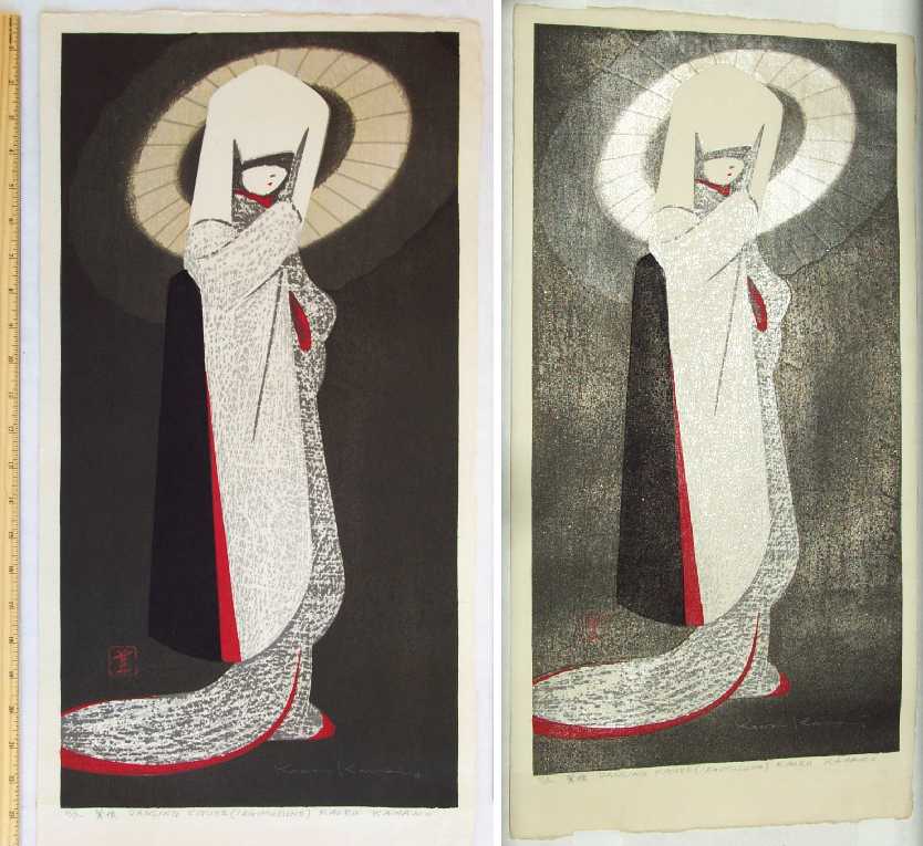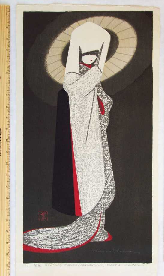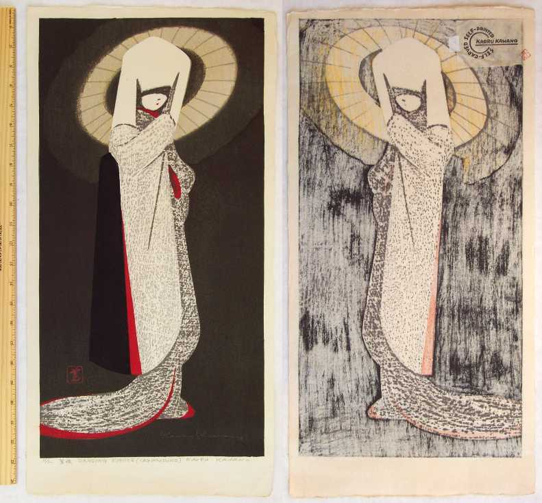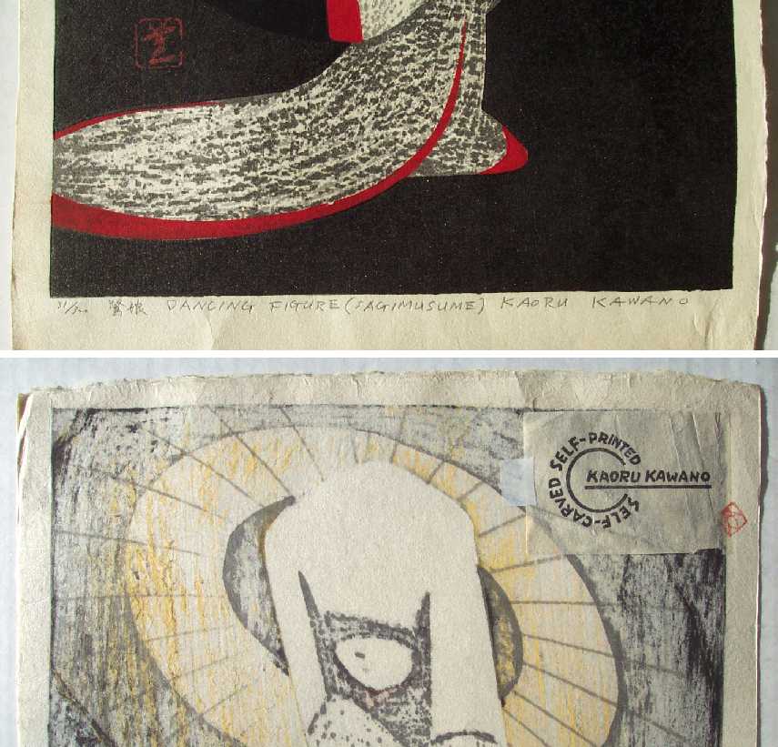 Pencil-signed in lower image. Sealed as "Self-Carved, Self-printed--Kaoru Kawano" on verso by artist. |