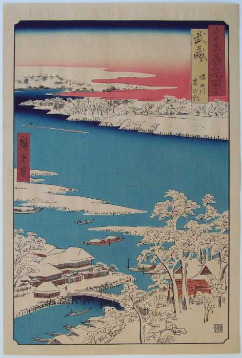 "Musashi Province, Sumida River, Snowy Morning, #16" |