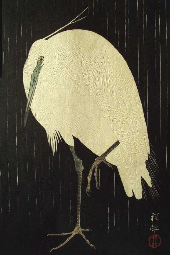 Very Fine. Nicely executed "bokashi" shading; deep and extensive "gauffrage" (embossing) to egret's feathers;