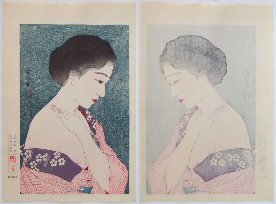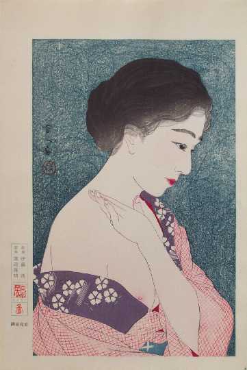 Very Fine. Nicely over-printed hairlines; superb "bokashi" (gradation of colors) shading to face, hand and