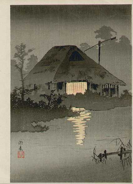 Very Fine. Superbly executed "bokashi" shading; light "gauffrage" to light's reflection rooftop; crisply