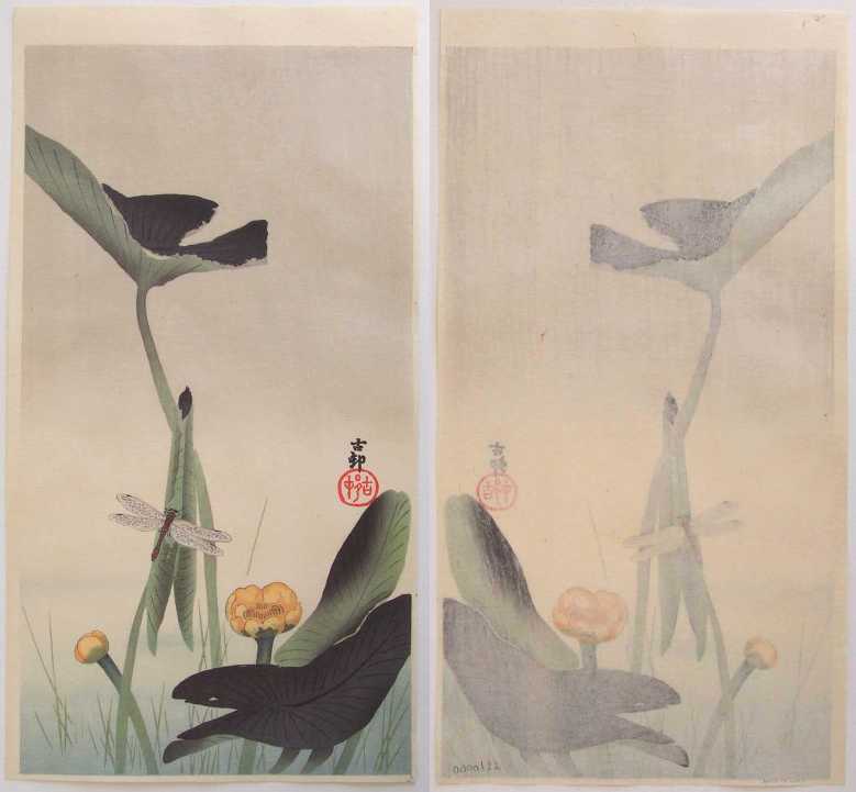 Very Fine. Skillfully executed "bokashi" shading throughout; nicely visible woodgrain in background; crisp
