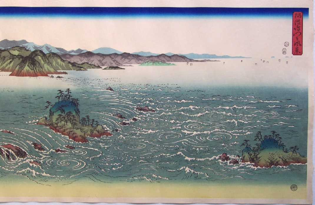 Hiroshige's famous masterpiece, depicting the naturally occuring whirlpools which result from