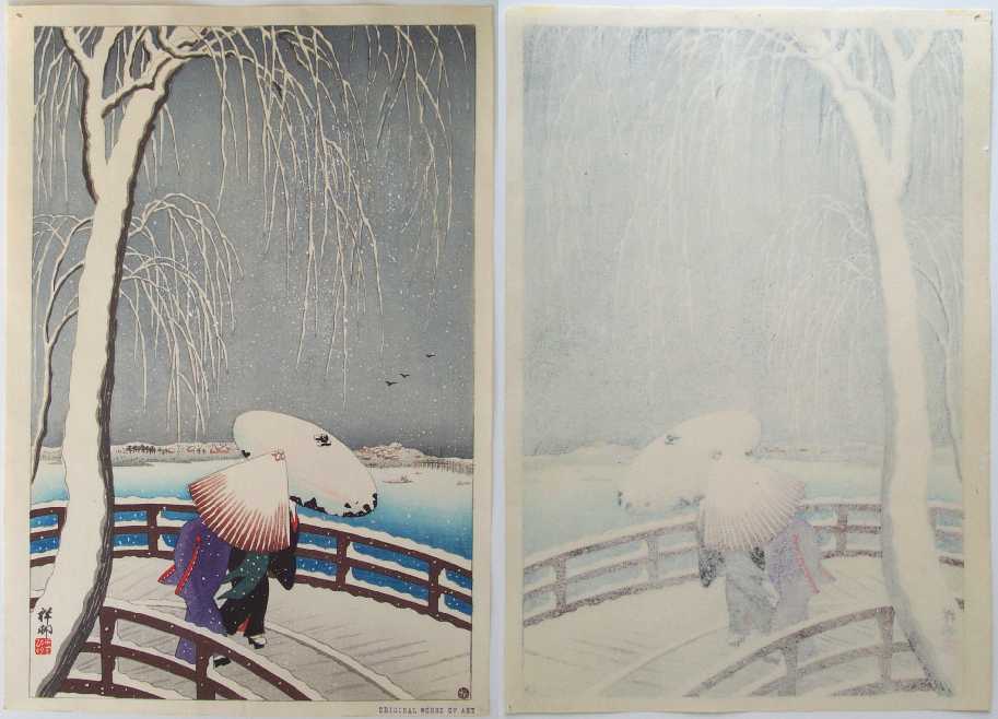 Very Fine. Superbly executed "bokashi" shading; lightly "gauffraged" (embossed) snow