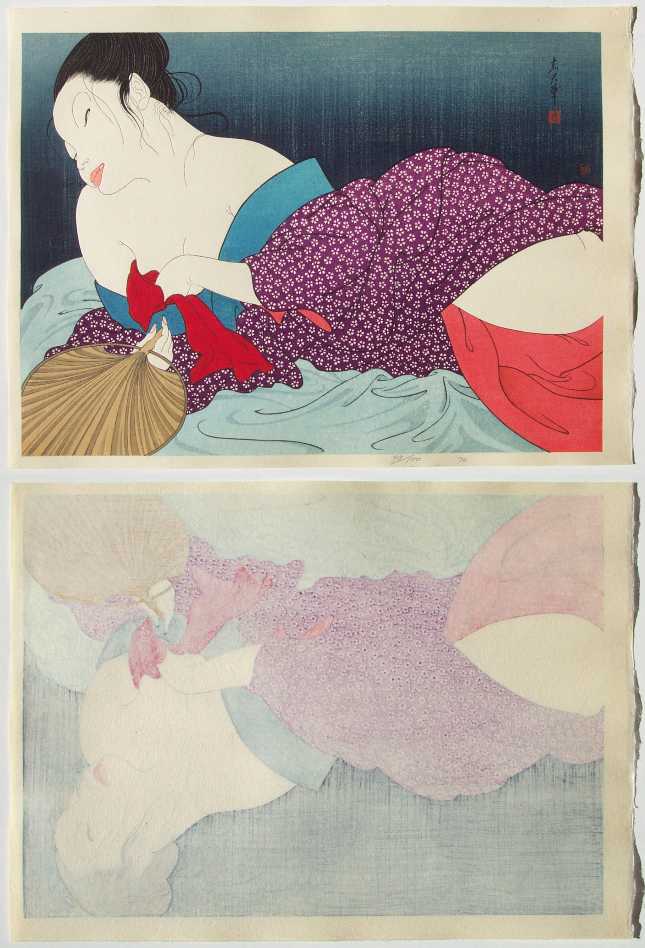 source in Tokyo tells us that "most Okada prints are found badly foxed.") |