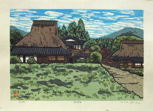 Peaceful rural "minka" (grass-thatched farm house) image. |