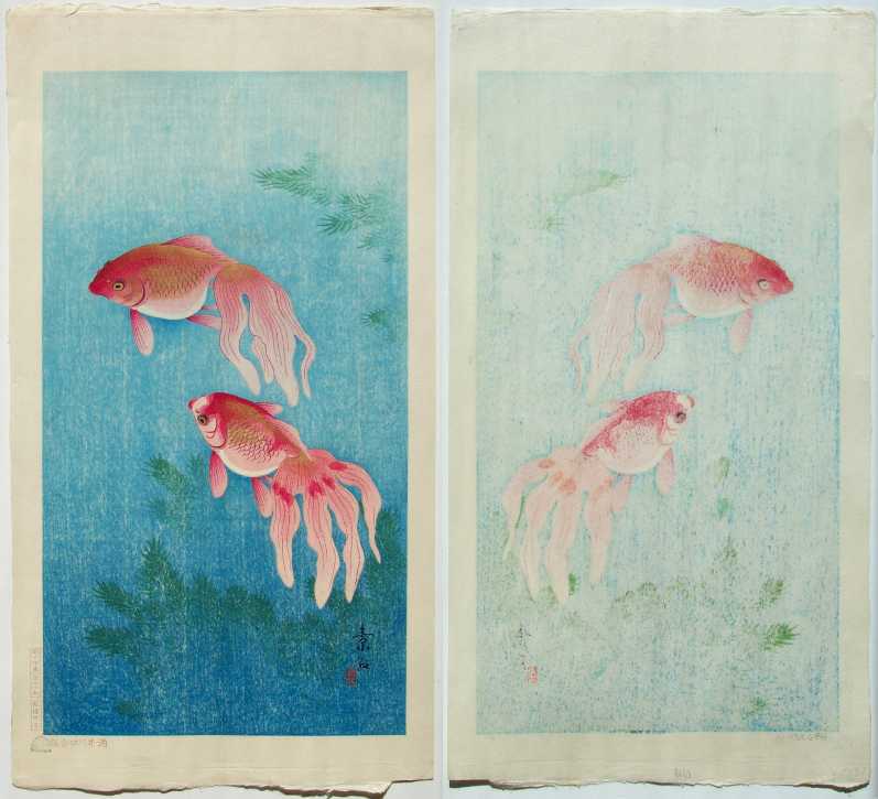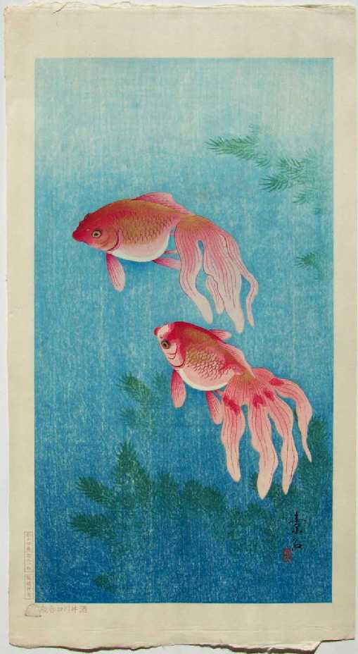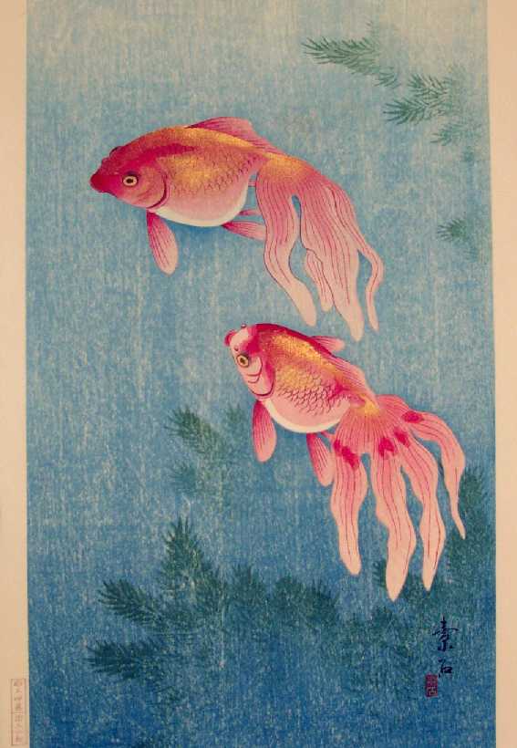 Beautiful underwater image--Soseki was a contemporary of Koson, producing exquisite "kacho-e" prints of the