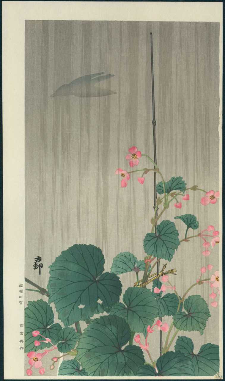 "Silhouetted Bird and Begonia in Rain" (given name) |