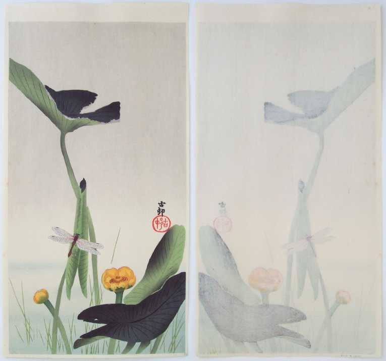 Very Fine. Skillfully executed "bokashi" shading throughout; nicely visible woodgrain in background; crisp