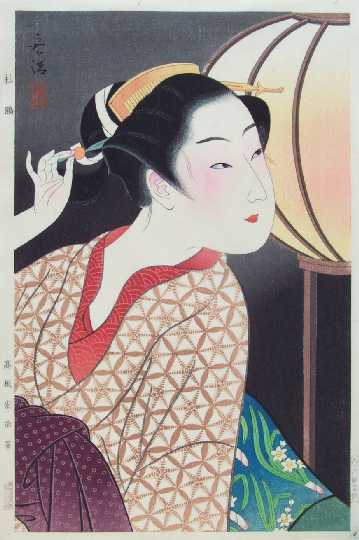 One of the splendid "bijin-ga" designs of the "shin-hanga" period--a young beauty seen before a Japanese