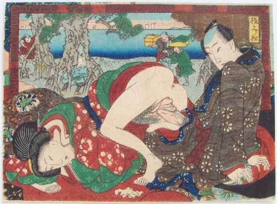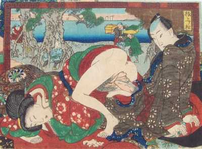 A wonderful surimono-quality "shunga" print in exceptional overall condition. |