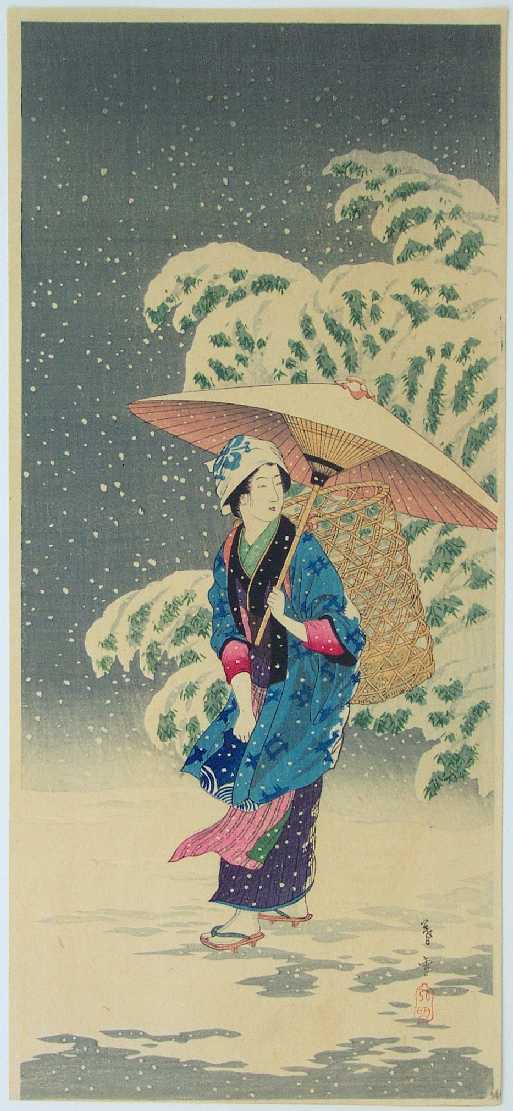 Very Fine. Superbly executed "bokashi" shading; "gauffrage" to accumulated snow, snow patches at