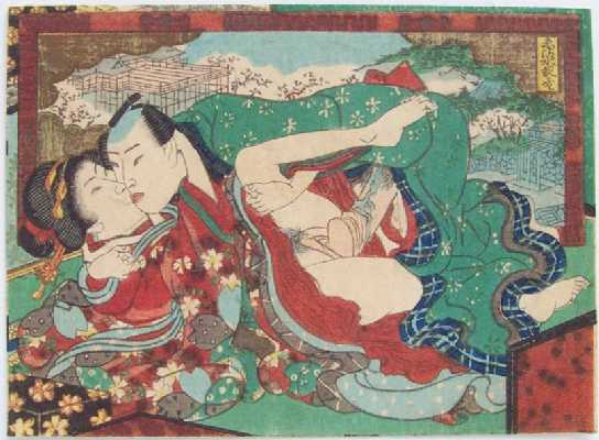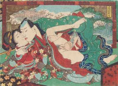 A wonderful surimono-quality "shunga" print in exceptional overall condition. |