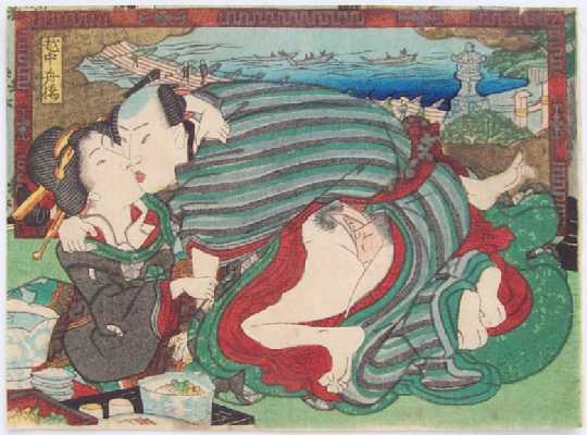 A wonderful surimono-quality "shunga" print in exceptional overall condition. |