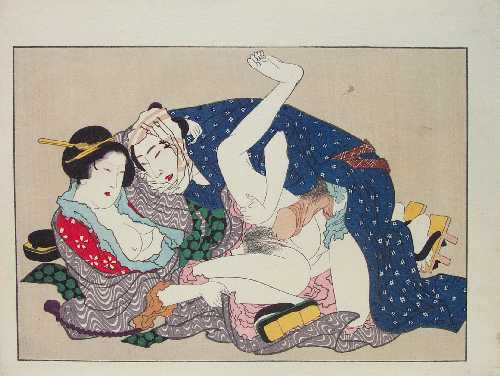 Very Fine. Nice "bokashi" shading; extensive "gauffrage" (embossing) to kimonos and sexual organs;