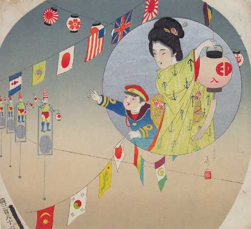 Original Meiji-era "ishihan" (fan) print circa 1880-90's. Salesman's sample