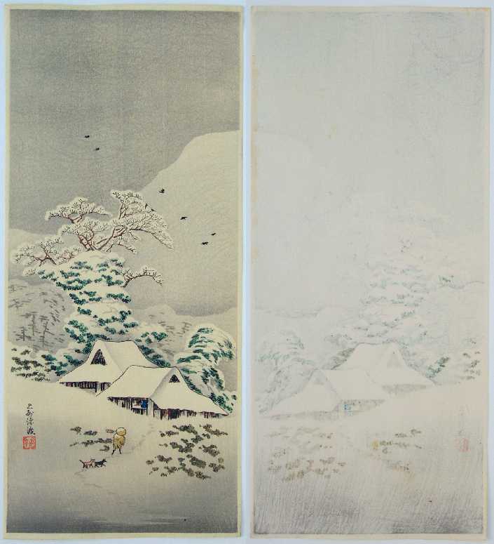 Very Fine. Superbly executed "bokashi" shading throughout; "baren sujizuri" tracings to
