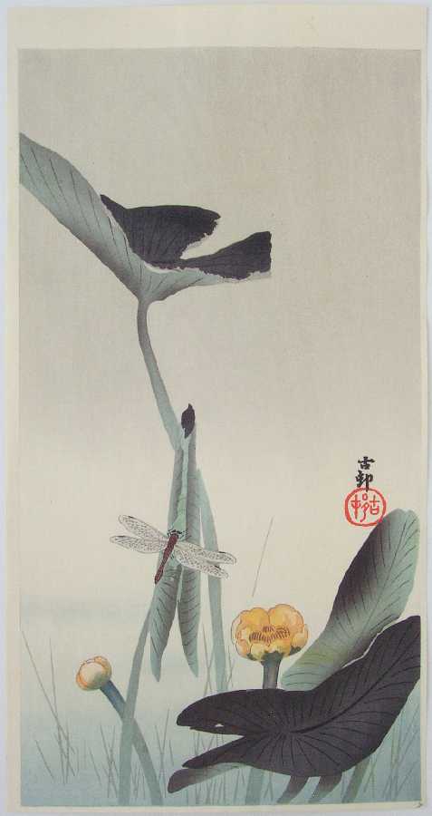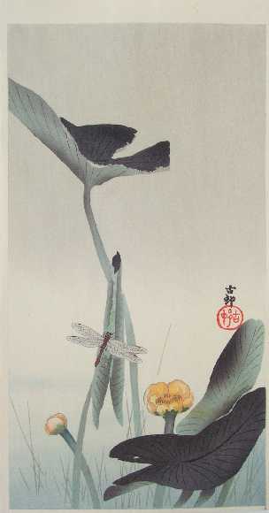 A nicely detailed image of a dragonfly perched atop a lotus leaf. Seldom seen. |