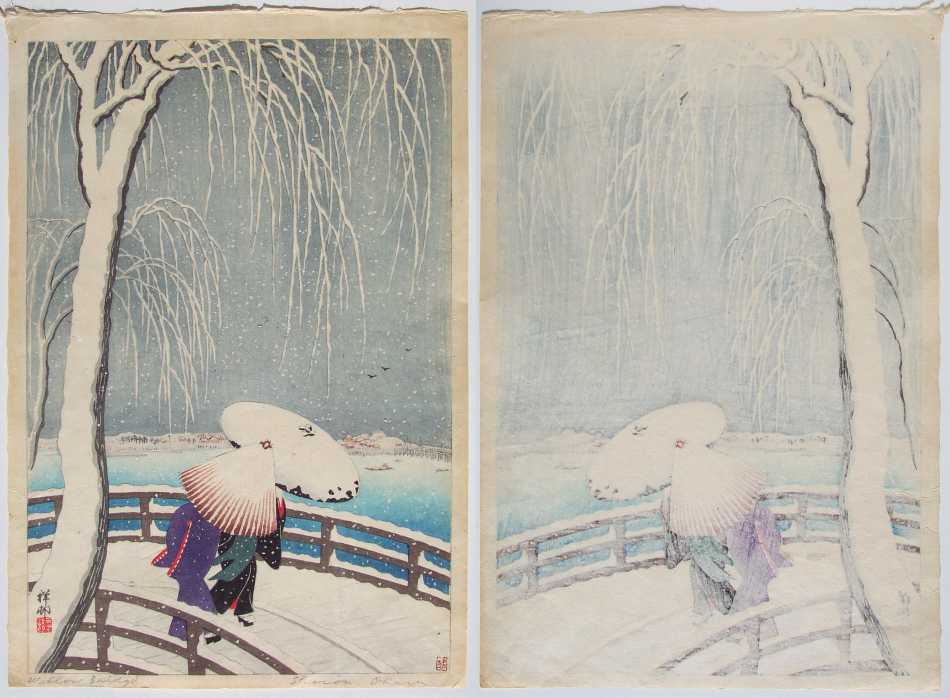 Very Fine. Superbly executed "bokashi" shading; lightly "gauffraged" (embossed) snow