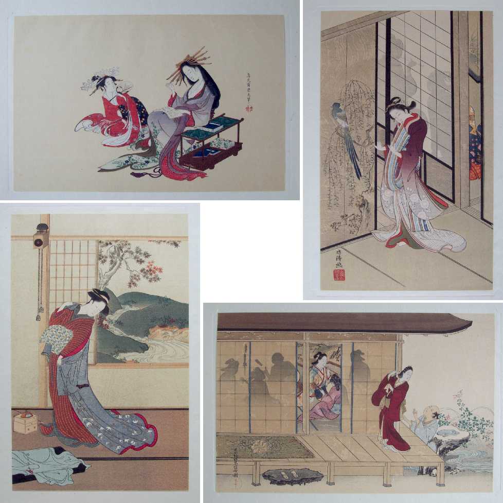 Eishi Hosoda; Morikiyo; Seiko Miyakawa; Shunsho Katsukawa. (top/left clockwise) |