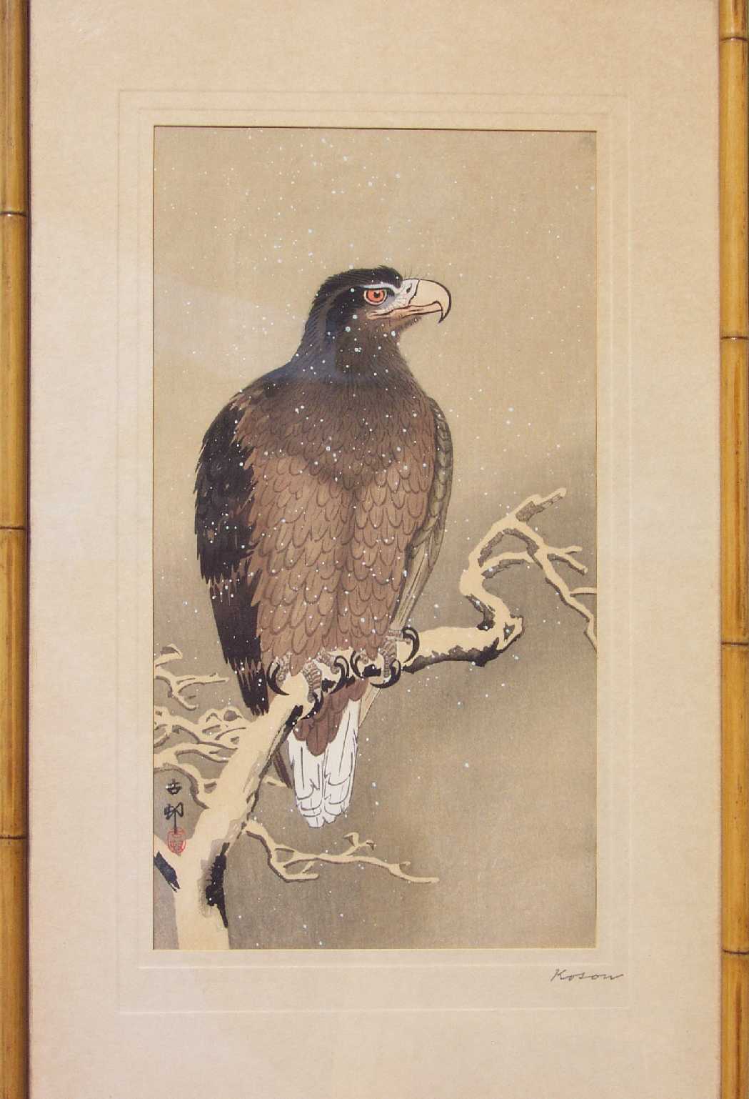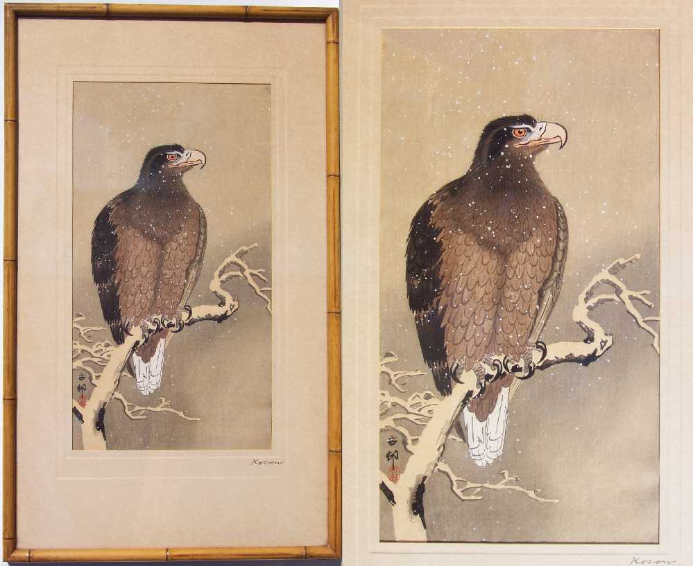A bold eagle image. Nicely presented within a faux bamboo frame. Rarely seen. |