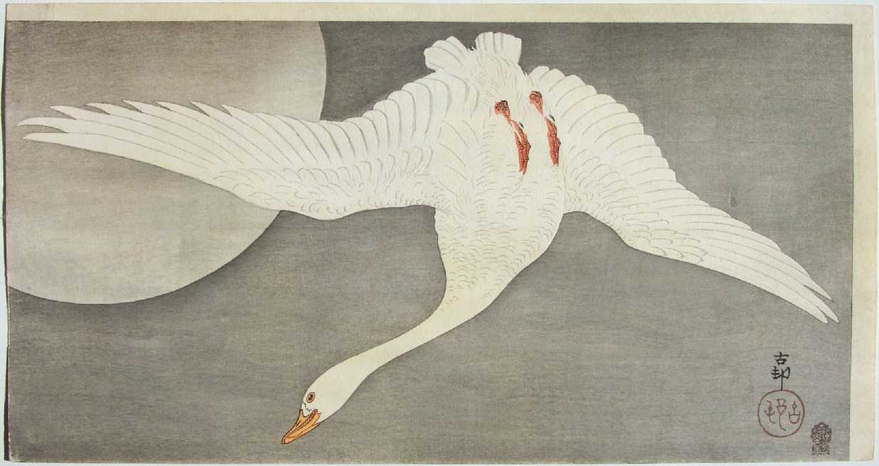 Very Fine. Superbly executed "bokashi" shading; strong woodgrain visible to sky, with a light dusting of "mica";
