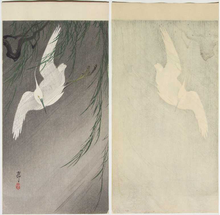 A wonderful Koson white egret image. PRE-1923 earthquake (note: Daikoku-ya Publisher ceased