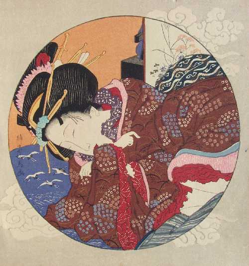 Very Fine. Skillfully executed "bokashi" shading; extensive "gauffrage" (embossing) to