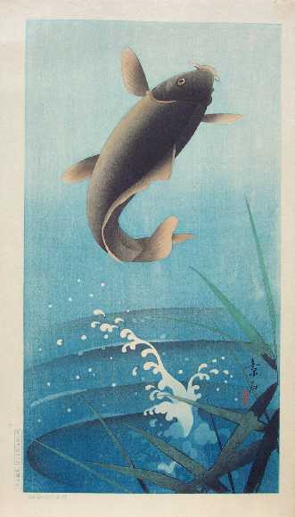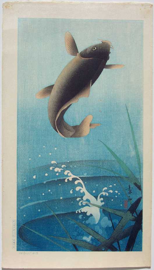 Beautiful leaping carp image--Soseki was a contemporary of Koson, producing exquisite