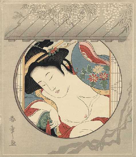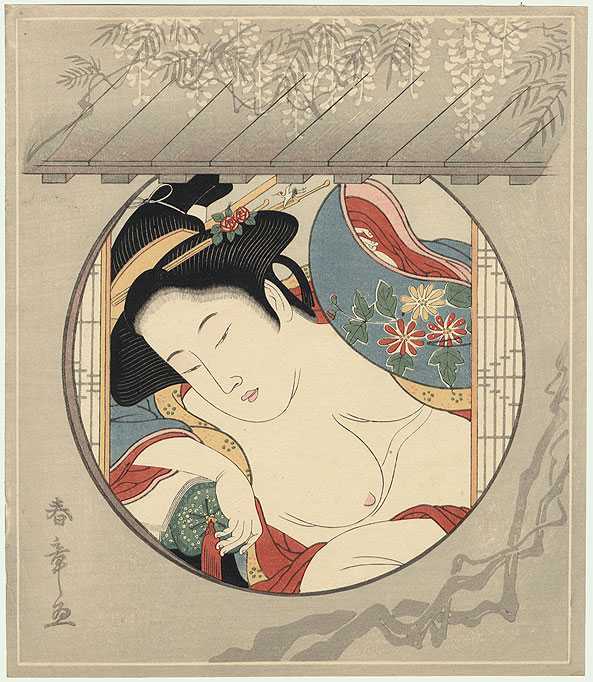 A colorful early-Showa period "shunga" print. Highly detailed and exquisitely printed--with