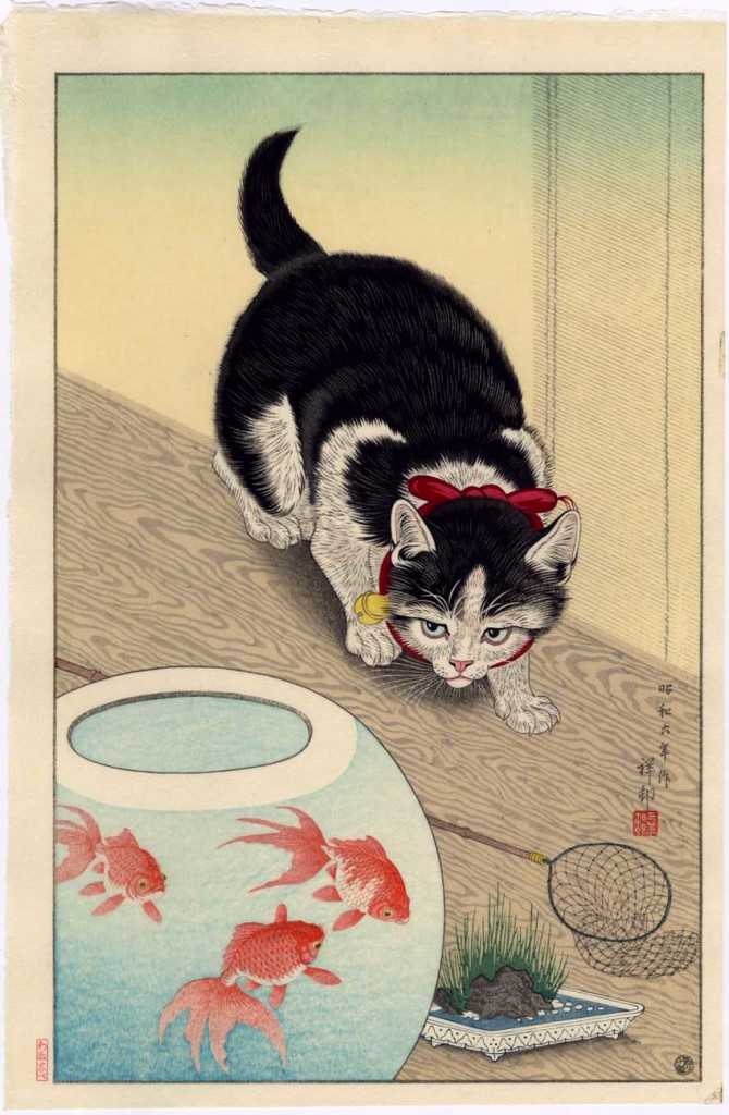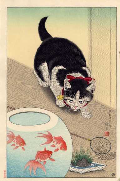 "Cat and Goldfish Bowl (on Veranda)" ("Kingyo-bachi ni Neko") |