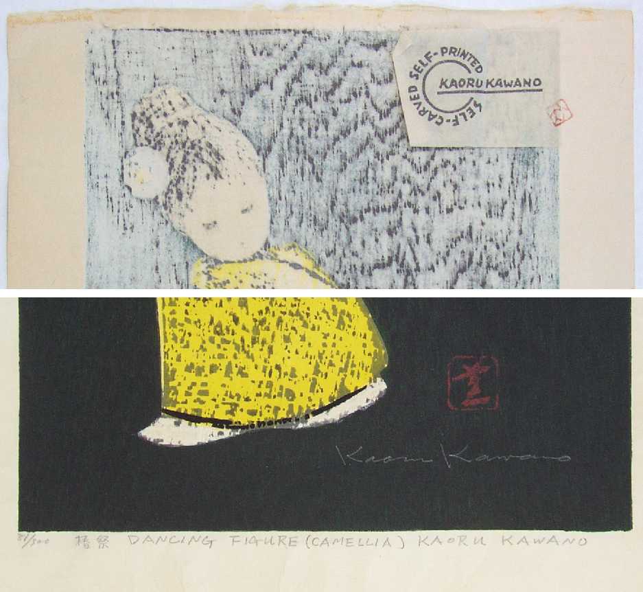 Pencil-signed in lower image. Sealed as "Self-Carved, Self-printed--Kaoru Kawano" on verso by artist. |