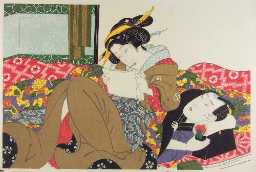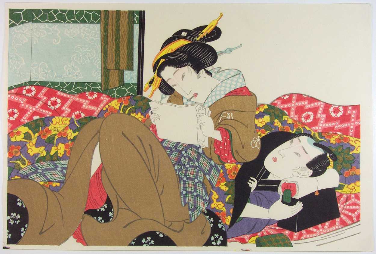 An elegant "soft shunga" (pillow print) depiction of two lovers. Very nice. |