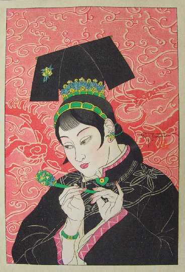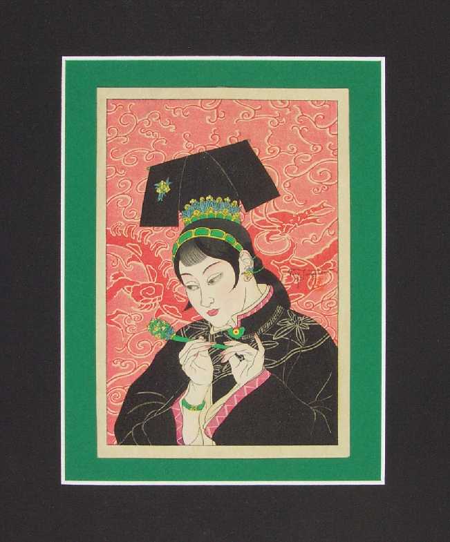 Jacoulet's most popular print design. Postcard size surimono style print produced as