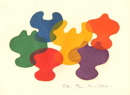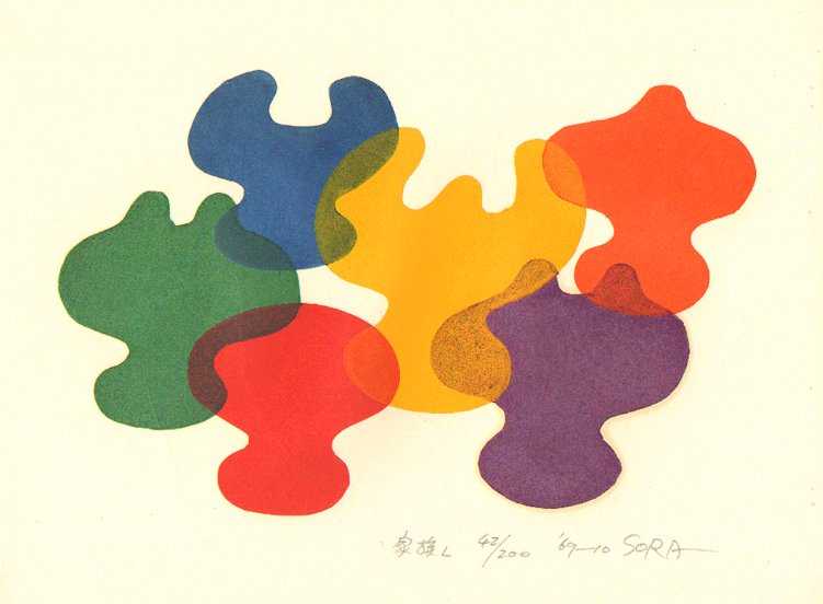Known for both his bold sculptures and woodblocks. Soro's "sosaku"