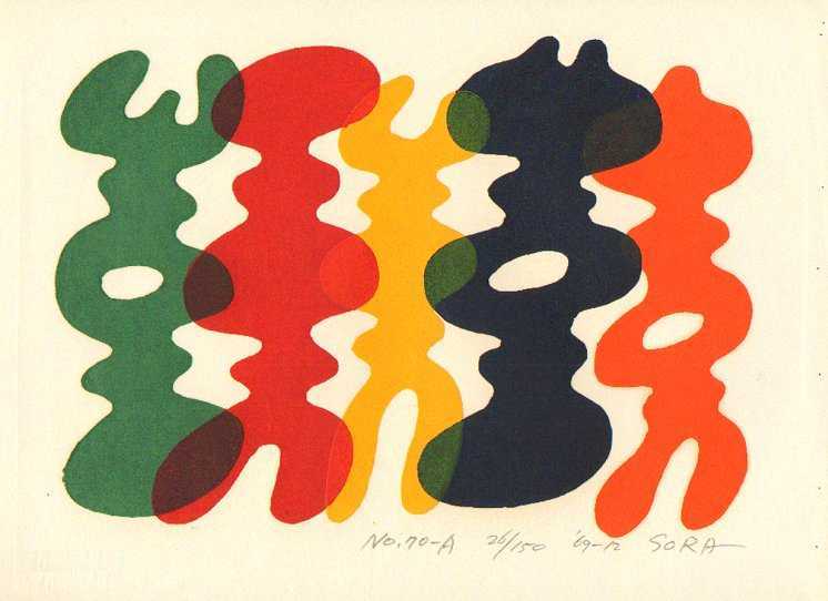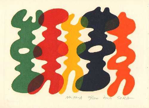 Known for both his bold sculptures and woodblocks. Soro's "sosaku"