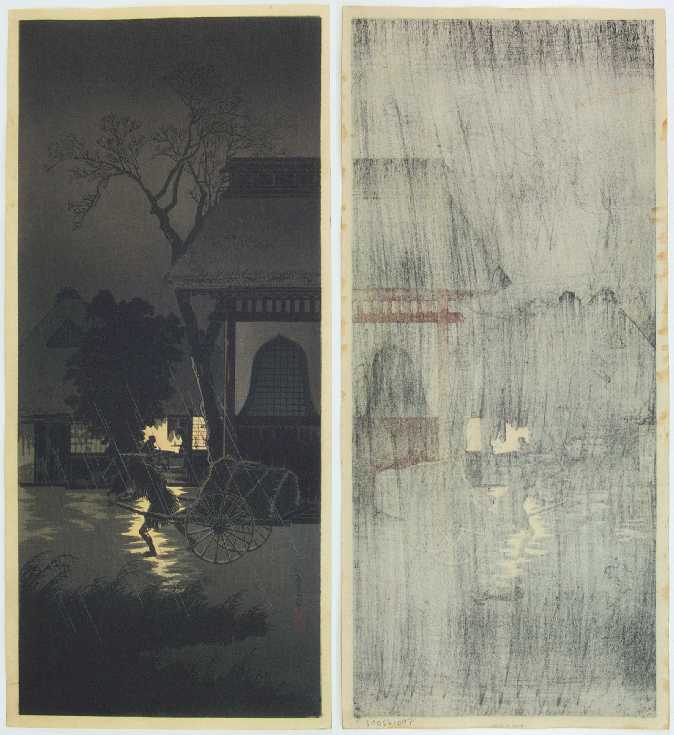 Very Fine. Superbly executed "bokashi" shading; nicely over-printed streaks of falling rain;