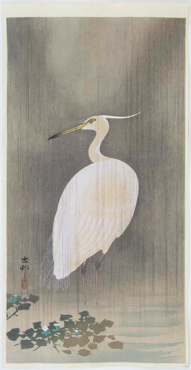 A little egret standing motionless in the rain. The original painting for this design is known. |