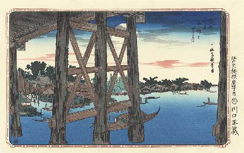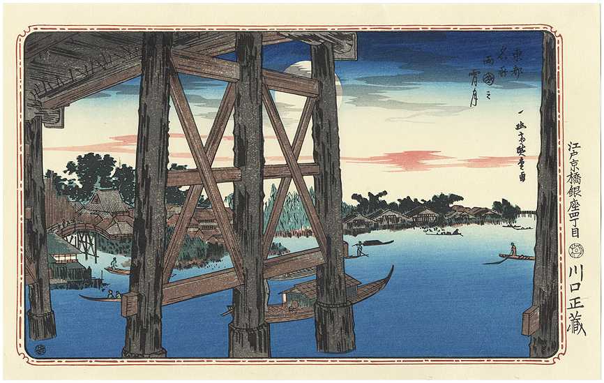 "Evening Moon at Ryogoku Bridge" ("**") |