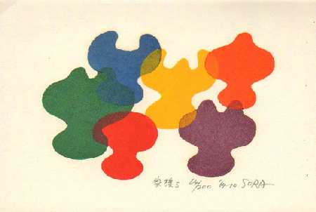 Known for both his bold sculptures and woodblocks. Soro's "sosaku"