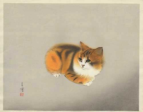 Very Fine. Skillfully executed "bokashi" shading to kitten and grey background;