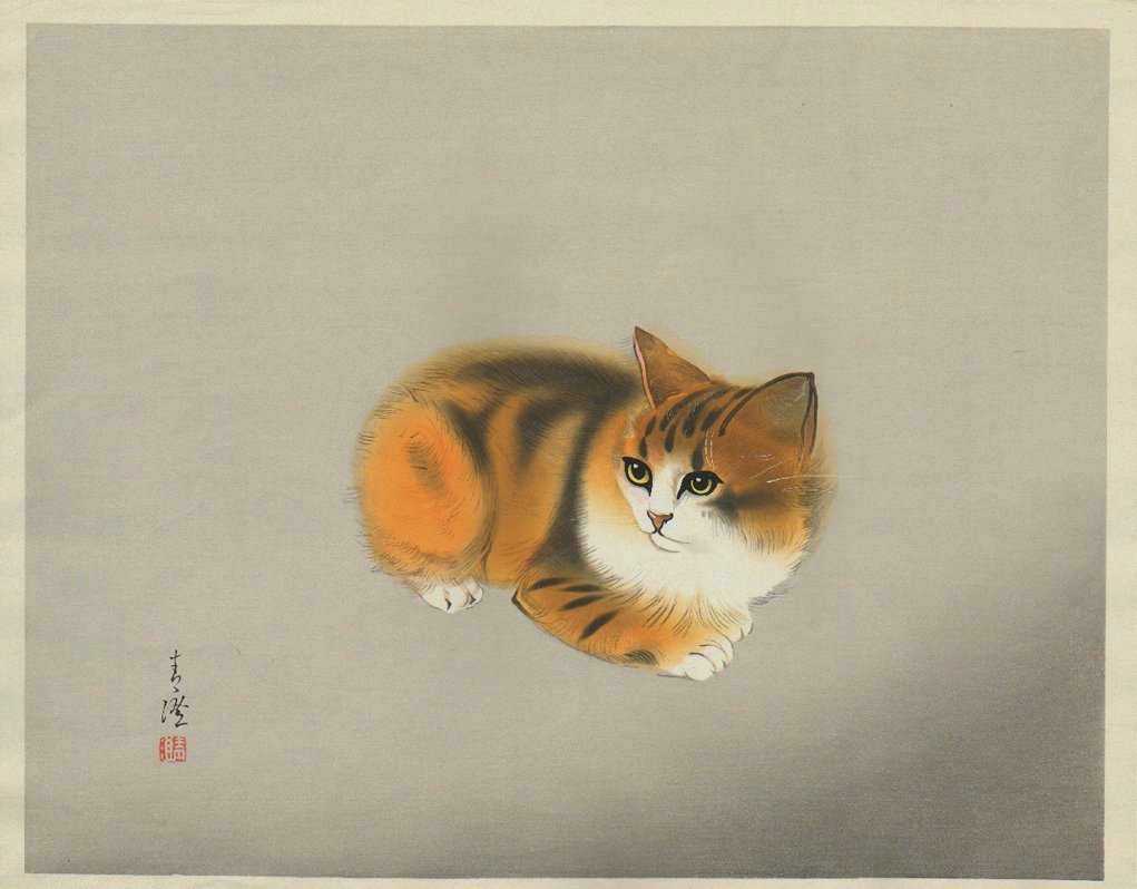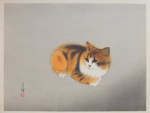 Very Fine. Skillfully executed "bokashi" shading to kitten and grey background;