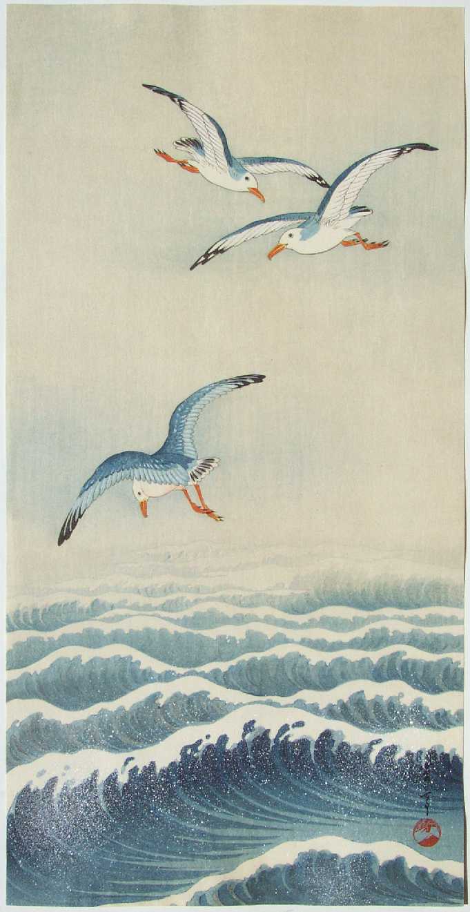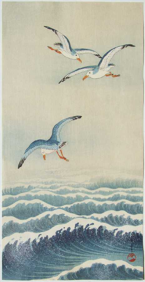 Beautiful "kacho-e" image (similar to Koson's "Gulls" image). A rare, pre-War image. Pristine.