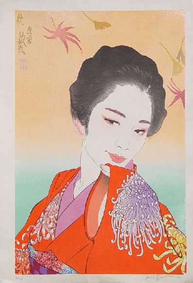 Paul's third design of a very limited 4-print "bijin-ga" series featuring a Japanese beauty named Akiko. See our related Article #23 "The Making of a Print--Paul Binnie's 'Red Fuji'" to learn about Paul Binnie's works. Also, see John Fiorillo's webpage on